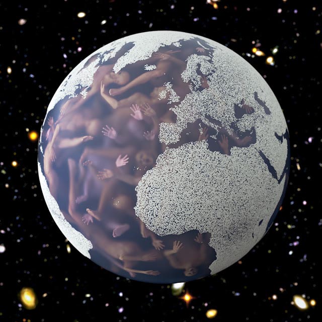 The digital artworks of artist Adam Martinakis unfold the nature of man, human emotions and the connection between the spirit and the material: “My aim is to explore the unknown, to cross the bridge of the existence, to reveal the ancient answers, and come up with new quests. (…) I create scenes of the unborn, the dead and the living, visions from a parallel universe”.
