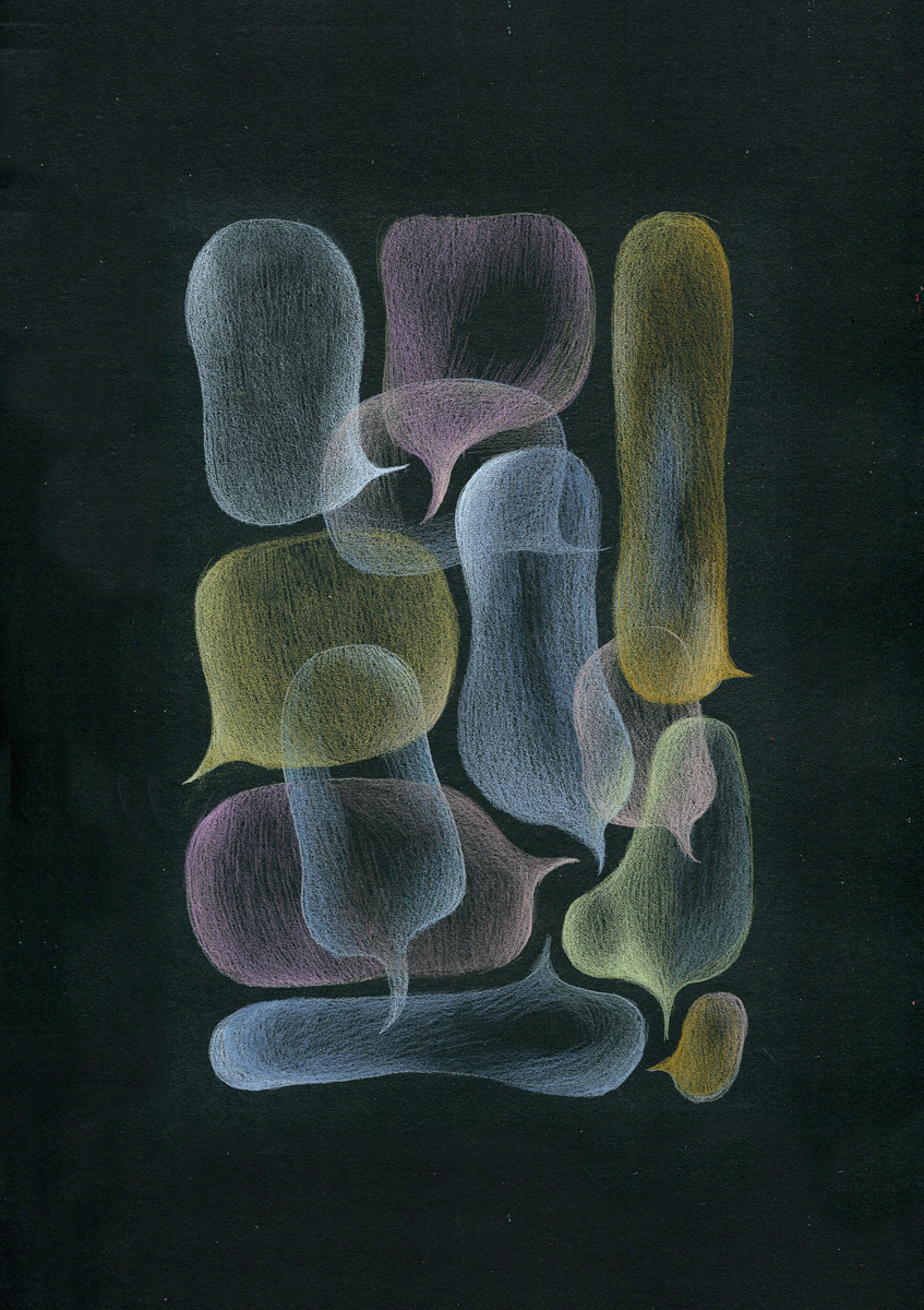 ‘Gentle words – never spoken’ / Schwarzarbeiten, personal series, color-pencil drawings on black paper