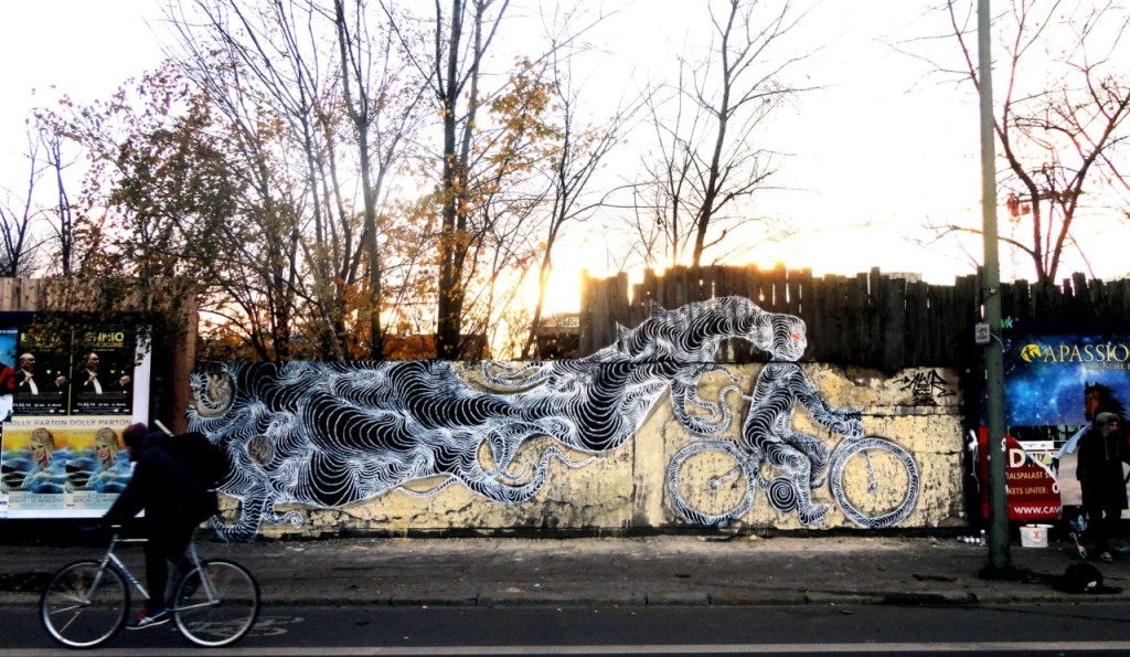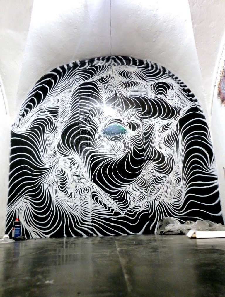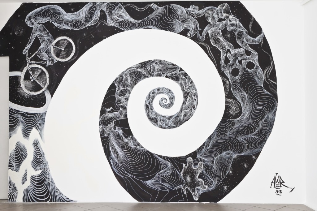 The works of AweR, that some have described as hypnotic graffiti, introduce us to new possible worlds, various animals of land and sea, mythological characters and mesmerizing creatures that result from white or vibrantly colored spirals and fluid lines.