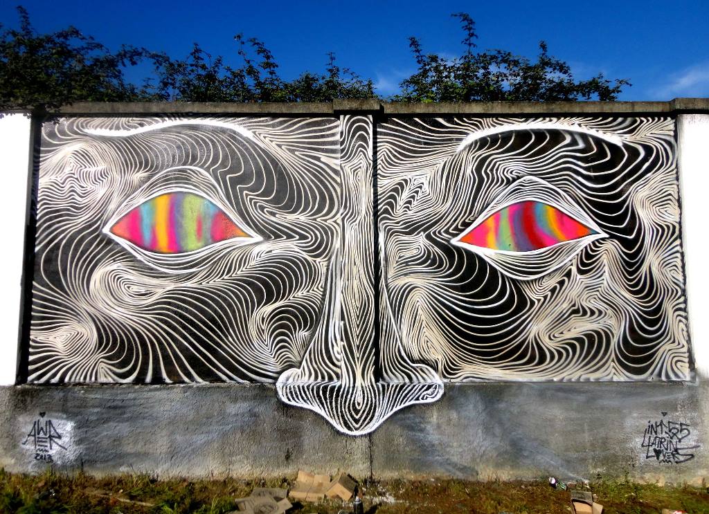There are a lot of optical illusions in the murals and artworks of AweR, who currently lives and works between Italy and Berlin, and we also notice a strong connection with a higher universal power that every viewer is invited to interpret in a personal way, according to his own vision and understanding.