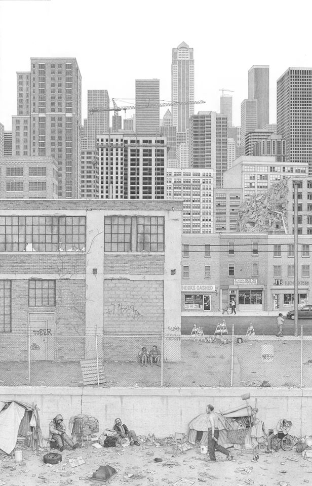 In his 2014 thought-provoking series ‘Fiction’, exhibited at The Fridge art gallery in May, DC-based artist Ben Tolman pictures an essentially realistic version of contemporary society, which no longer hides behind its illusive masks and nice fairytales. Although it feels as if observing a parallel universe with almost no possibilities of interfering in our comfortable vision of reality, the world depicted by the artist shows more similarities with our own than differences.