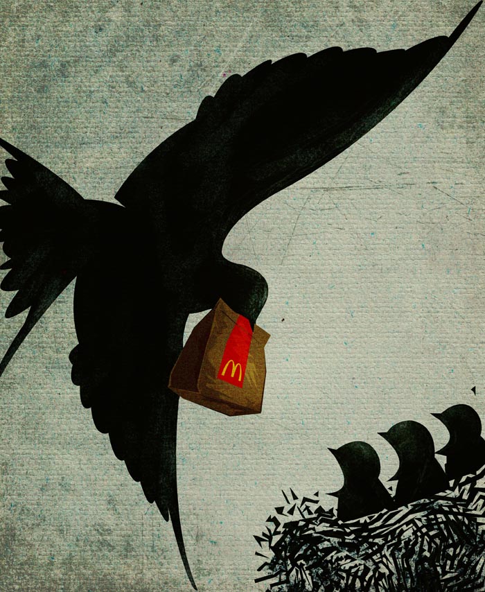 In his editorial, narrative and conceptual works, Italian illustrator Benedetto Cristofani exposes, in a very clever and ironic way, global and local issues of today’s society, spotting the changes in human habits and relations, and highlighting the essence of things which, although familiar, we often fail to approach.