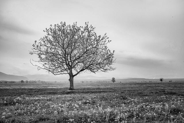 With a preference for black and white photography, Romanian artist Dragoș Mălăescu links human to the immensity of nature, revealing a deeper connection with and between all that is alive – trees, birds, us.
