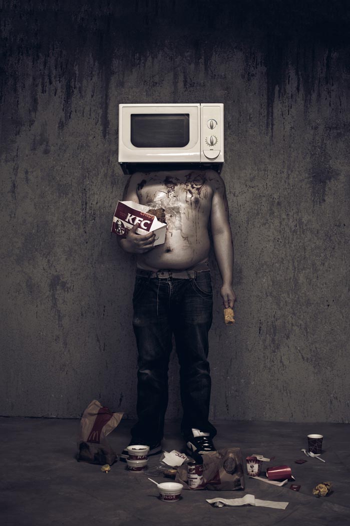 In the series entitled “Modern Evolution Is a Decadent Decay”, Hong Kong based photographer Earl Wan explores how man in today’s society is slowly degraded by consumerism, convenience, status and materialism.