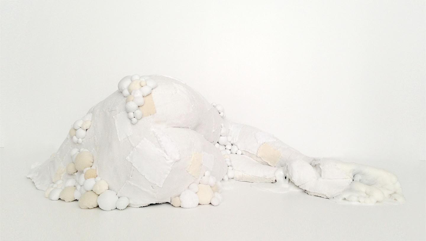 ‘Overgrowth’ / September 2013; plaster, fabric, poly-fil, thread, staples, silicone, tassels; 23 x 40 x 12.5″