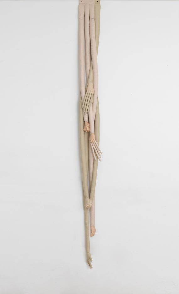 ‘Courtship’ / May 2013; fabric, silicone, poly-fil, wood; 10.5 x 1′