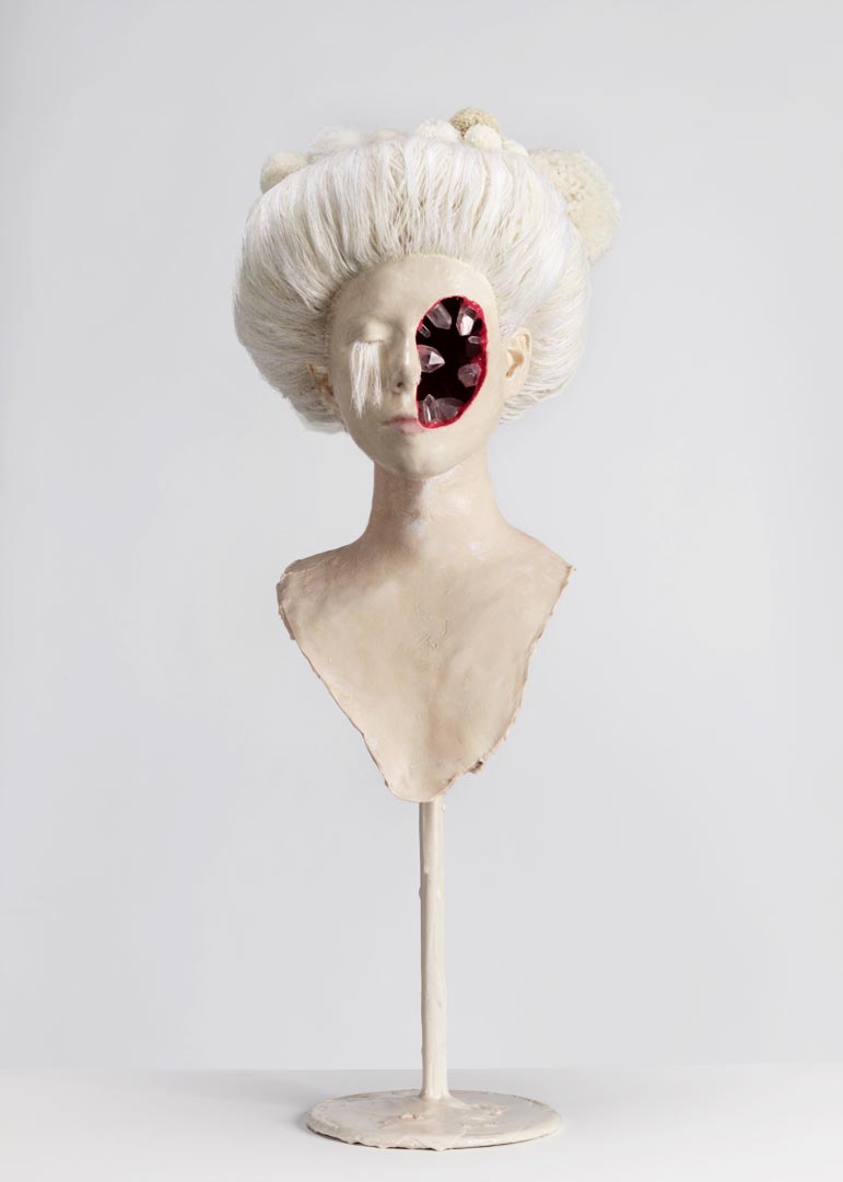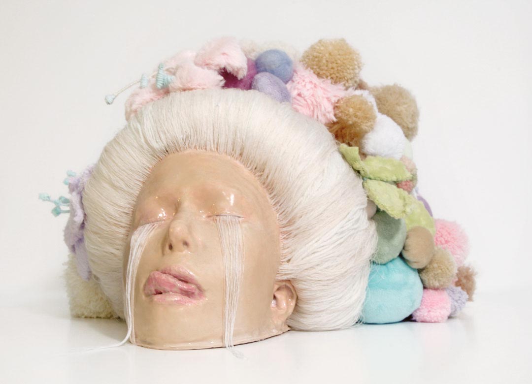 ‘Bloom’ / February 2012; polyurethane resin, oil paint, plush, thread, yarn; 20 x 18 x 11″