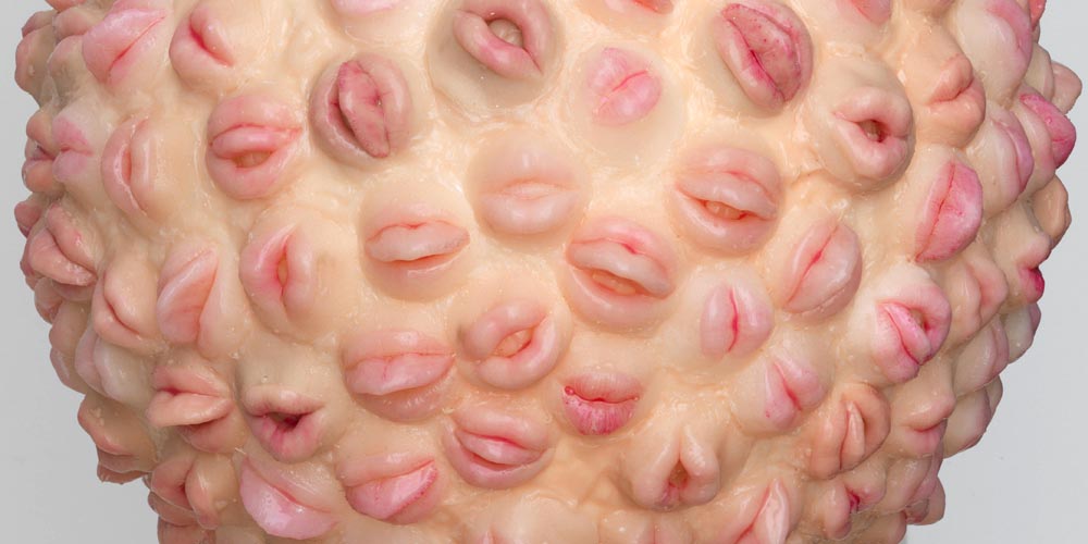 ‘Dry Kiss’ / April 2011; fabric, polyurethane resin, oil paint, thread, nylon rope; 3 x 4 x 4″