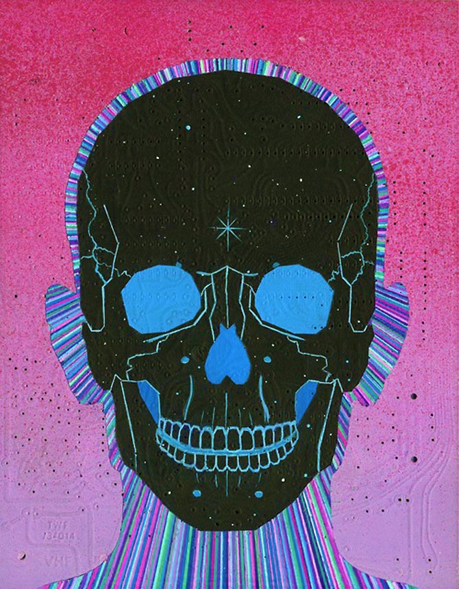 VANITAS 2.5, 2014, mixed media on circuit board, 6.28×9.13in / Holographic Conjuration