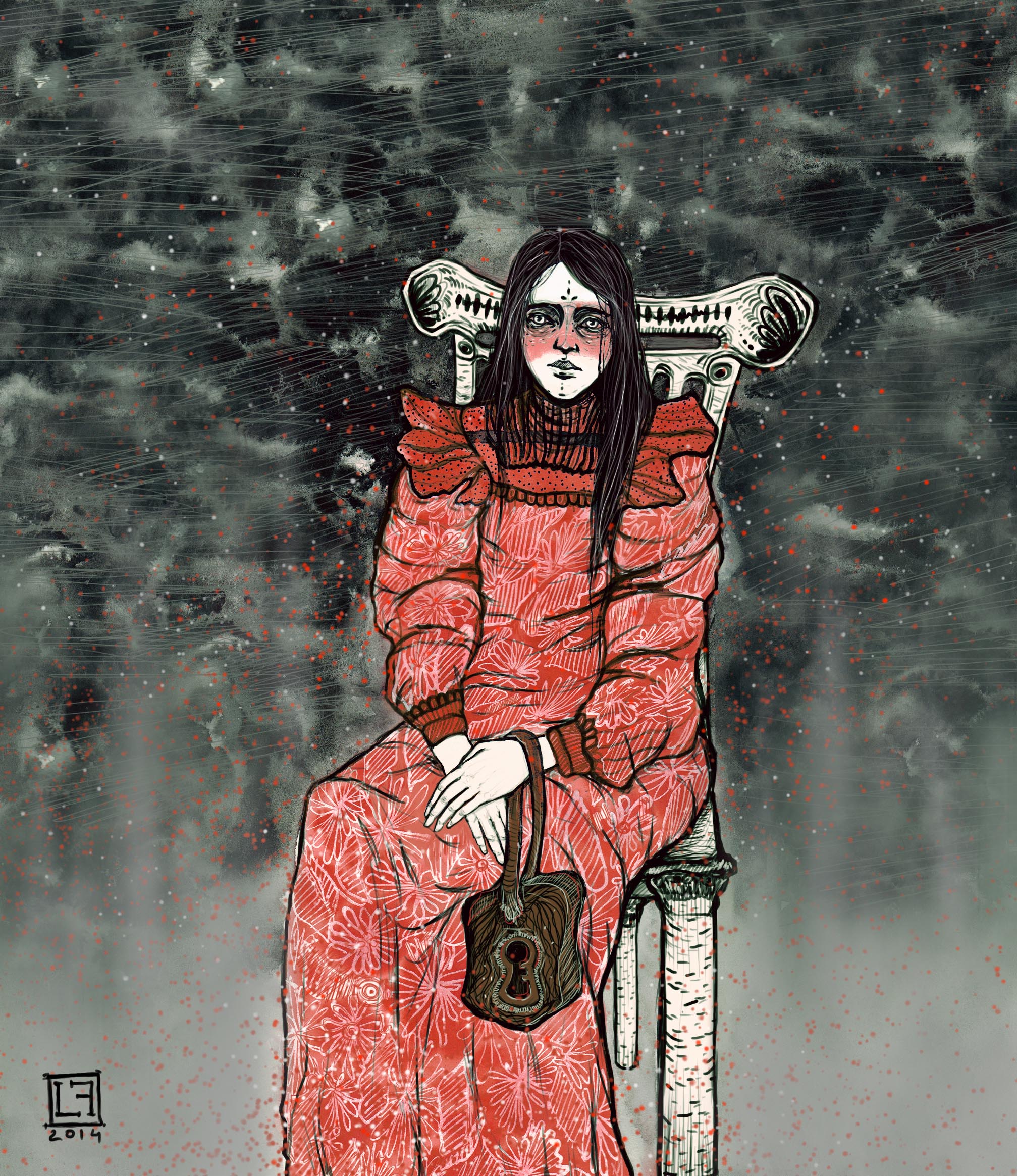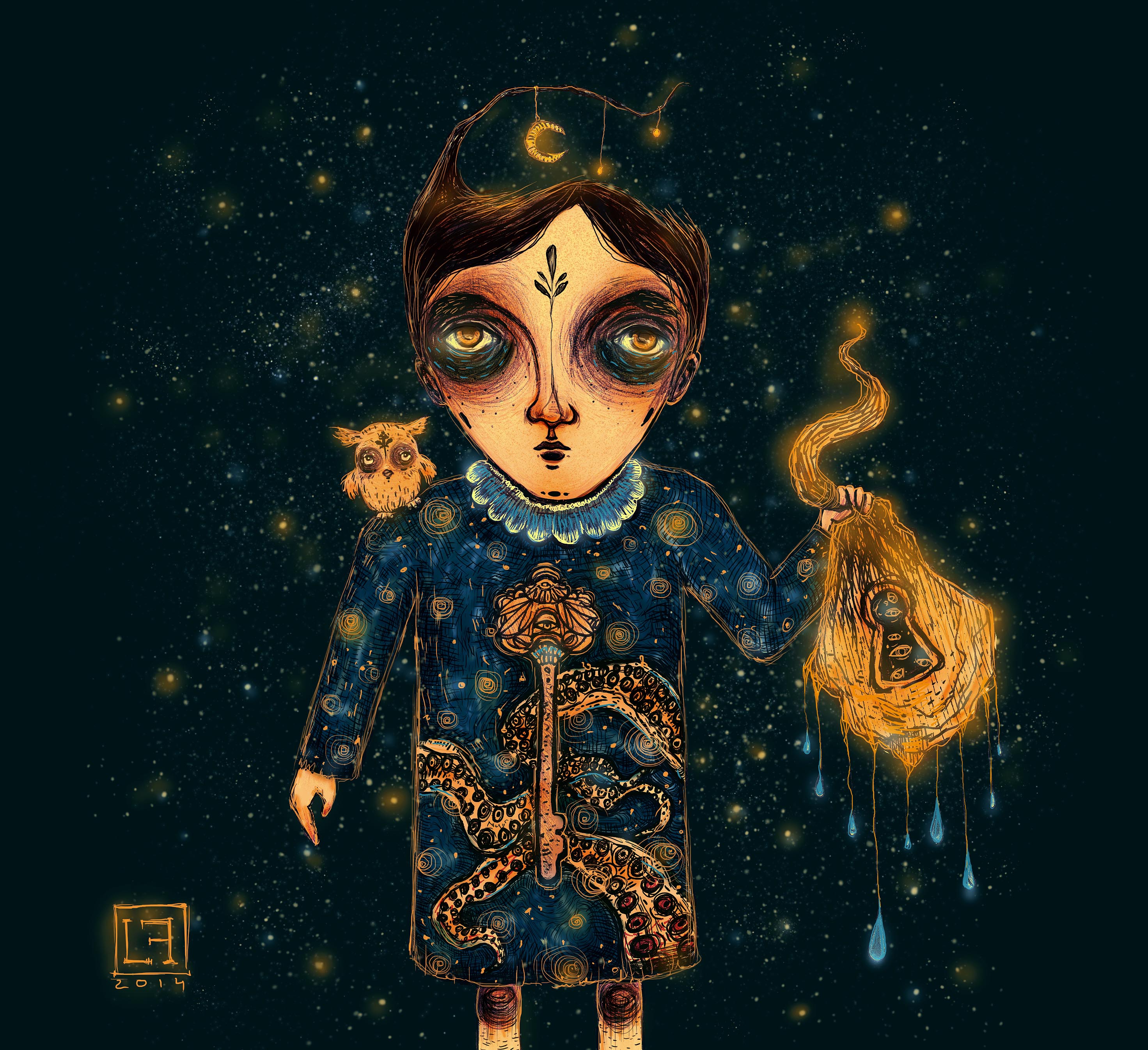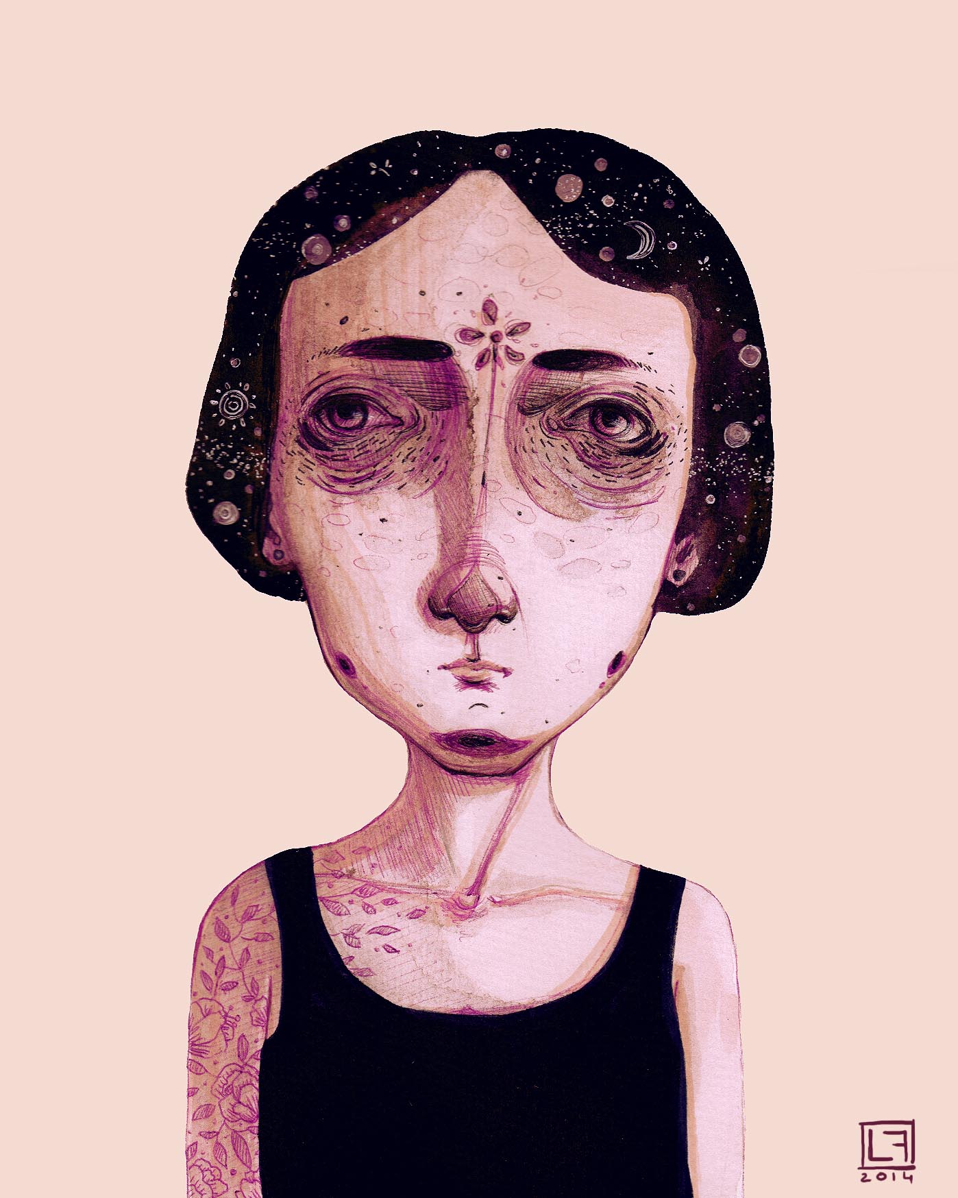 “I am really attracted to bizarre representations of the human psyche, which usually makes me add a dark vibe to almost any work I create. Most of my characters portray a very absent look or they seem to be isolated in their inner world. I also like to create a contrast between vibrant, beautiful colors and the rough feelings and emotions I want to express”.