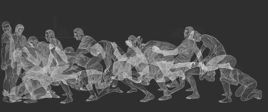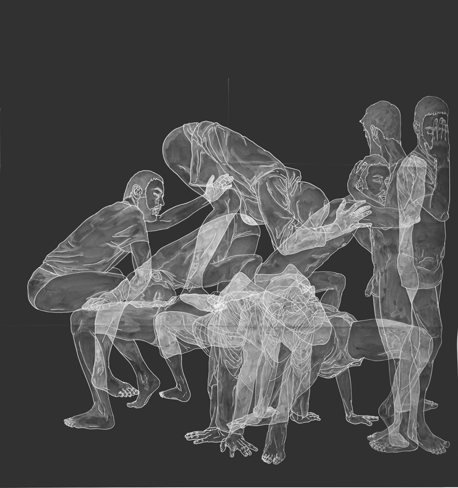 Unlike the multiplication or observation of a single gesture or movement, a variety of human states and emotions defined by tension, chaos or despair become one, an antagonistic force that fights from within and challenges the individual’s own existence and meaning. These struggles are personal and may reflect self-constructed barriers, fears and frustrations. It is interesting how alienation has a direct impact on human form, and how the figurative becomes almost abstract depending on the intensity of the scene depicted by the artist, yet trying to remain present, tangible before the viewer.