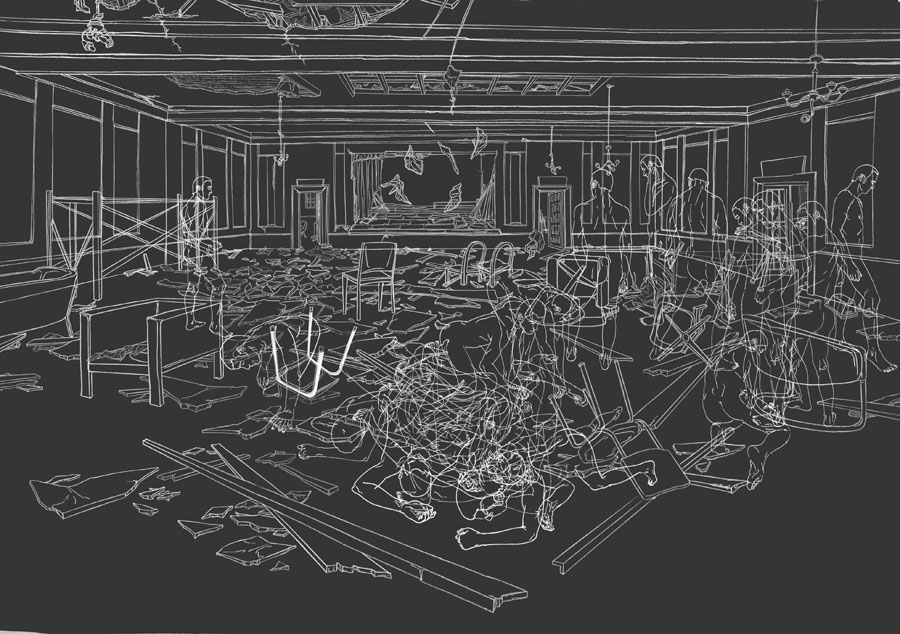 ‘Opening night’, 120×150, pencil, ink and gouache on paper, 2013 / View series