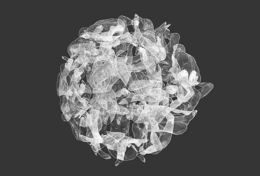 The complex works of Moisés Mahiques appear to focus on inner struggles of the contemporary individual, revealed through amazingly precise dynamics and inspiring studies of human motion, often rising from subtle details, fine lines and transparent fills of white on dark paper.