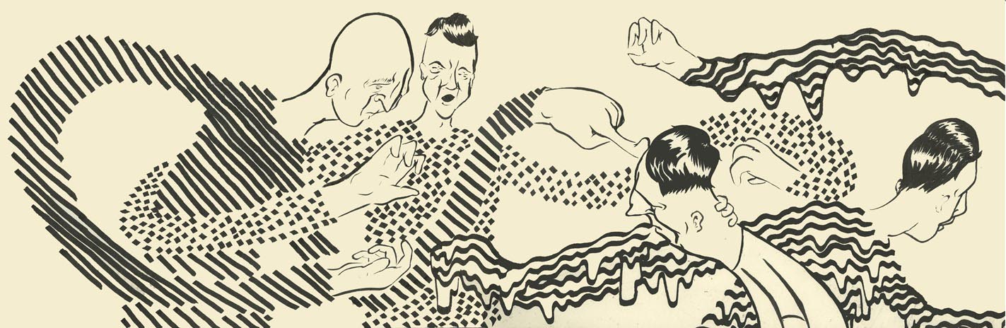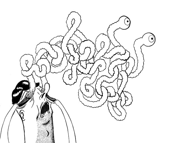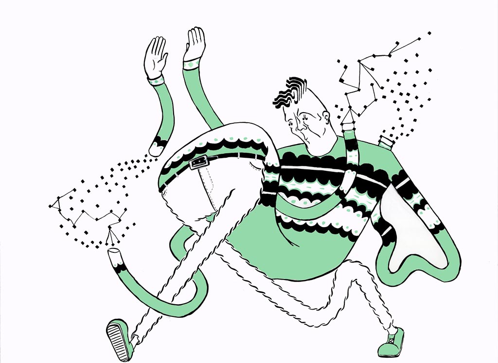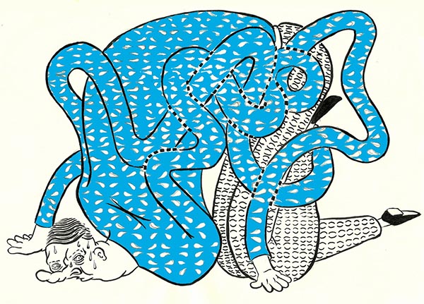 Young illustrator Nathan Motzko creates strangely tangled characters, using simple patterns, with sketches deriving from specific sounds, especially instrumental hip-hop samples and ambient music.