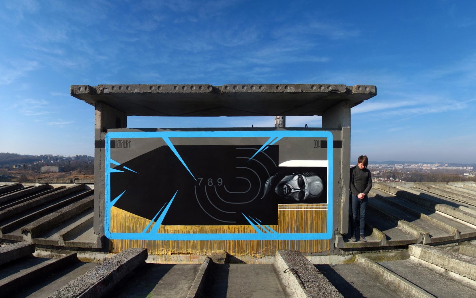 Sergii Radkevych, also known as TECK, creates murals and artworks that focus on spirituality and themes that relate to various social issues: “My urban interventions hold the balance between contemporary murals and graffiti. They shift the meaning of the space they occupy. My subjects originate from religious iconography and combine simplified religious symbols with geometrical forms to arrive at contemporary spiritual abstract form.”