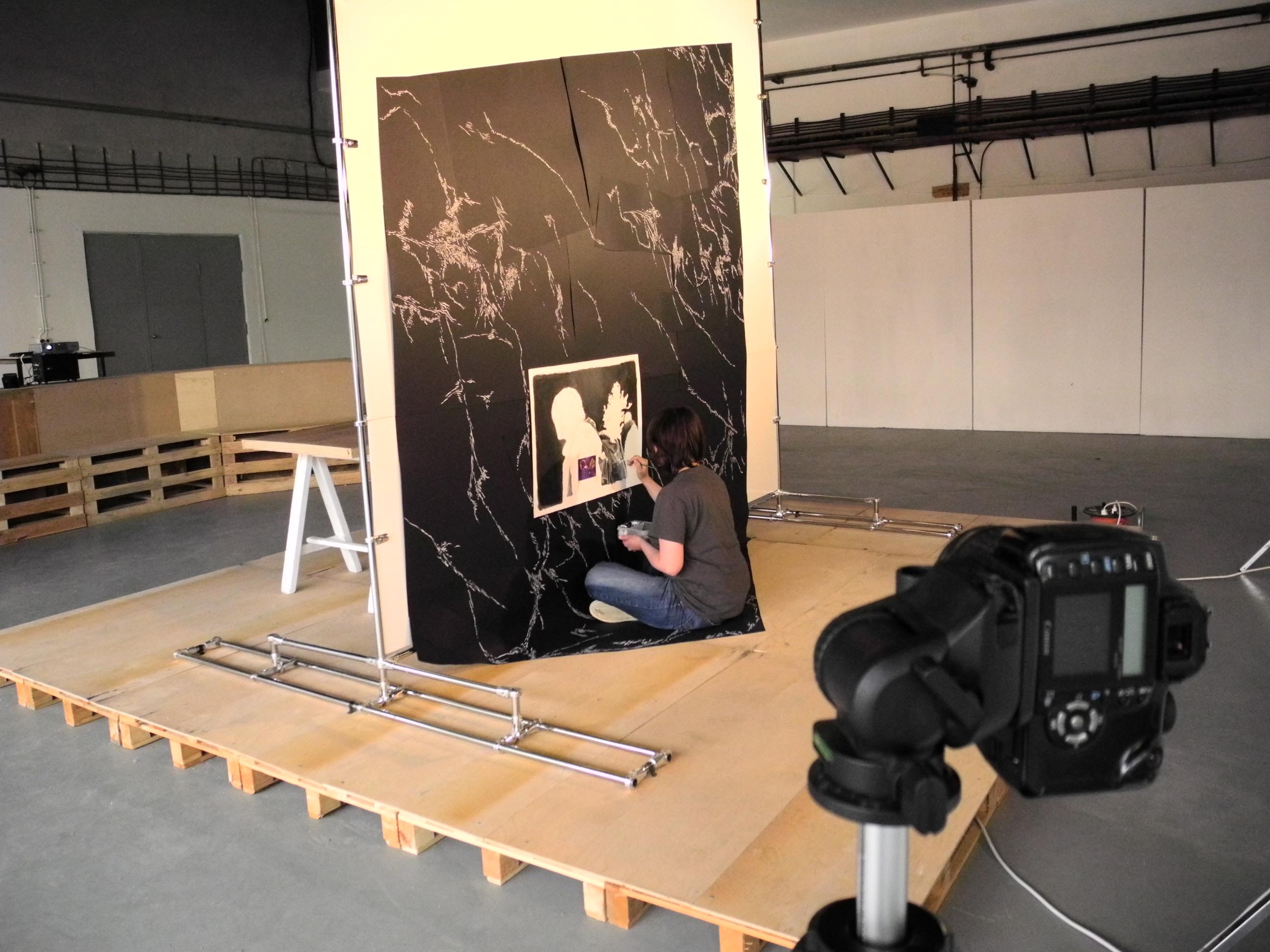 Ana Maria Micu, Installing the Image (2014), interactive reenactment of the studio in Shortsighted. Presbyopic. Blindfolded group exhibition at Allegra Nomad Gallery, May 19-25, 2014. Copyright © 2014 Allegra Nomad Gallery, All rights reserved.