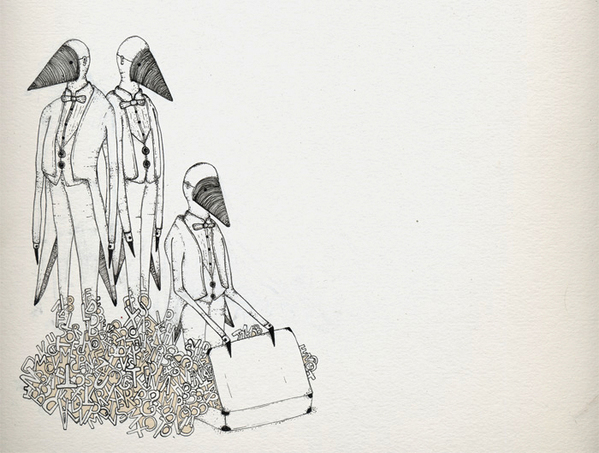 We also find his characters presented in human-animal hybrid forms, connected to strange machines that act as cages, restricting their moves and controlling even the direction of their gaze. Perhaps his recent works are comments on human condition today, however, what we do know is that vivaUltra is inspired by music. We like, for example, his artworks for the Italian band Gazebo Penguins, for ‘The name is not the named’ CD.