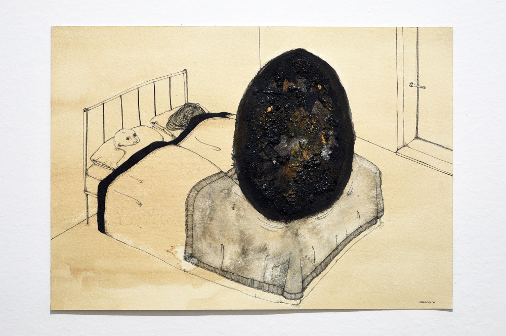 The works of Milan-based artist vivaUltra are defined by a sense of absurd, of emptiness and inner void, and sometimes show the unconscious mirage that manifests as a hypnotic intrusion into the reality of his characters, which seem confused, yet captivated by this new encounter.